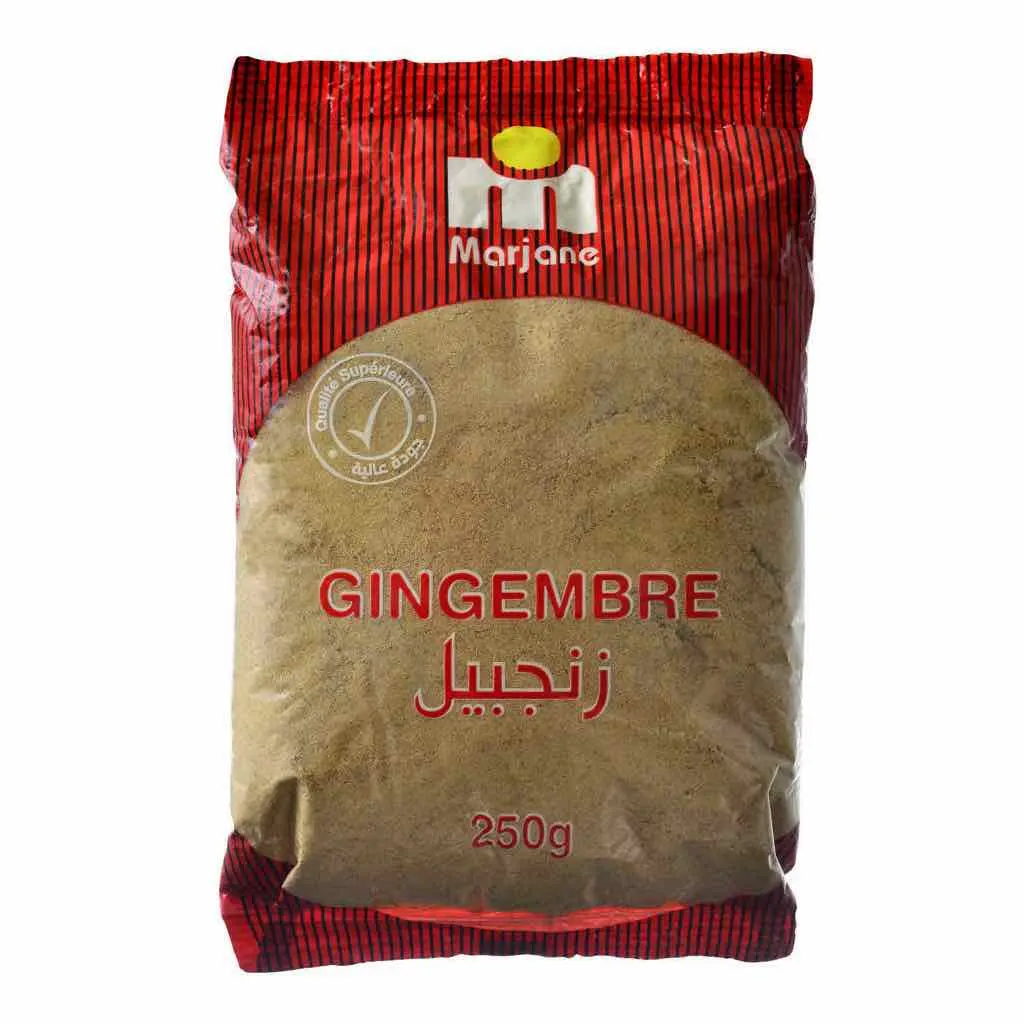 Gingembre moulu. Poids net : 250 g.