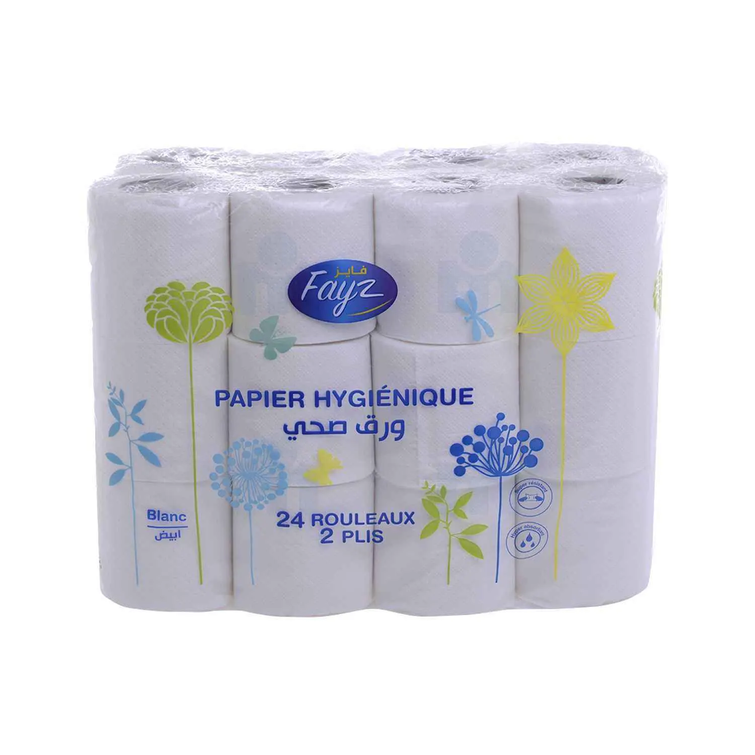 Papier hygiénique blanc 2 plis x24 rouleaux – FAYZ