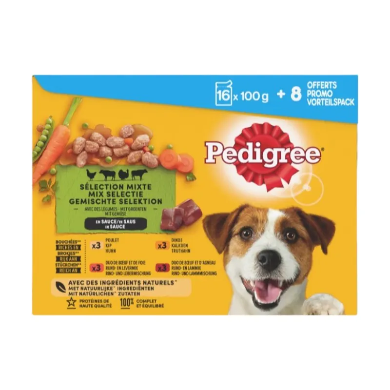 Pâtés pour chien fraîcheur en sauce 4 variétés 24x100g – PEDIGREE