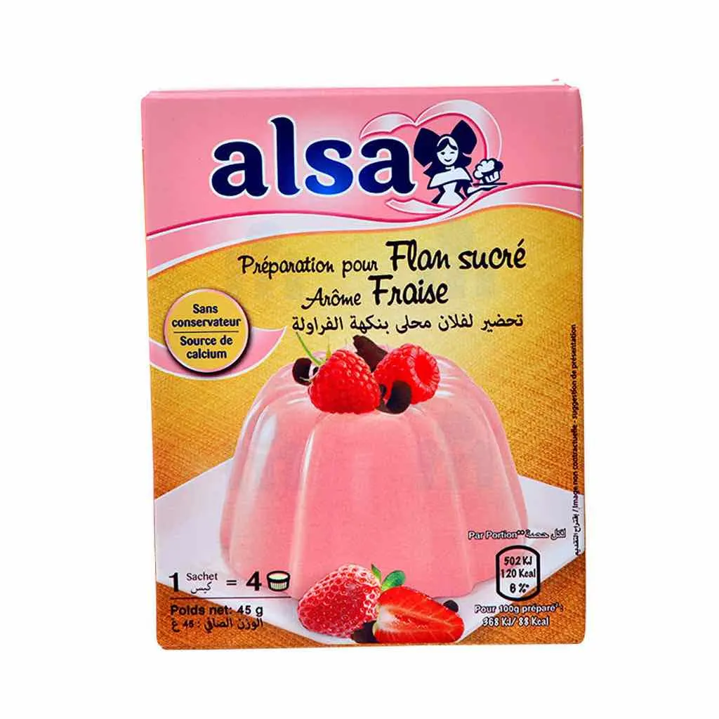 Préparation pour flan arôme fraise 45g – ALSA