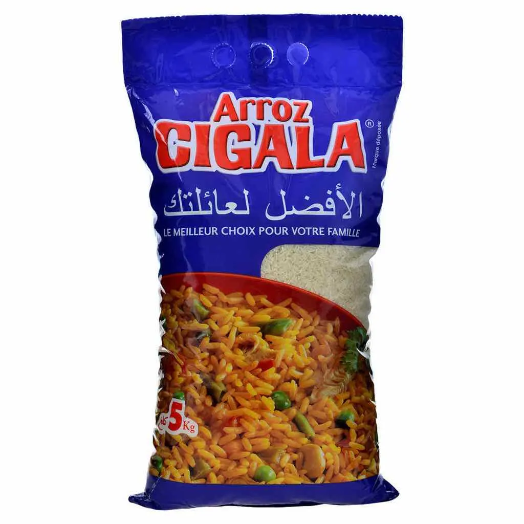 Riz long blanc. Poids net : 5 Kg.