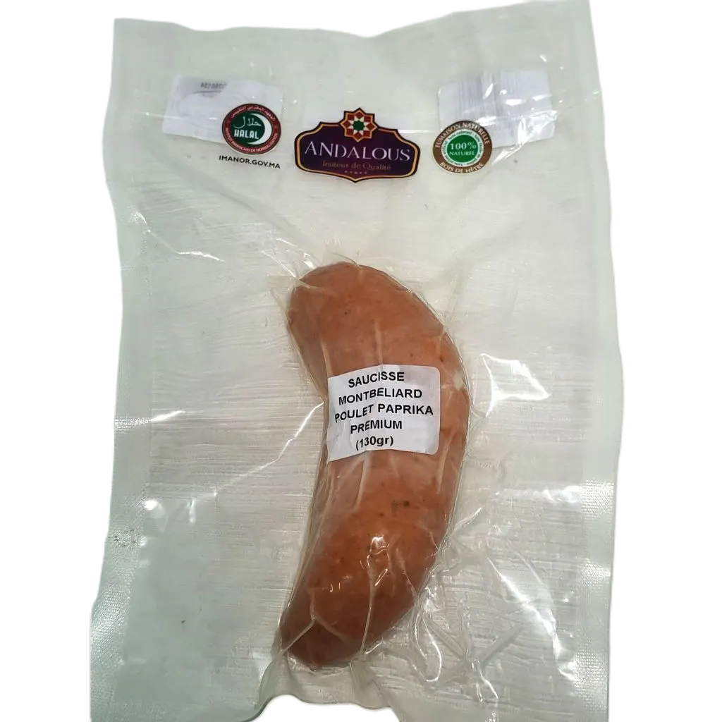 Saucisse montbeliard poulet paprika 130g – ANDALOUS